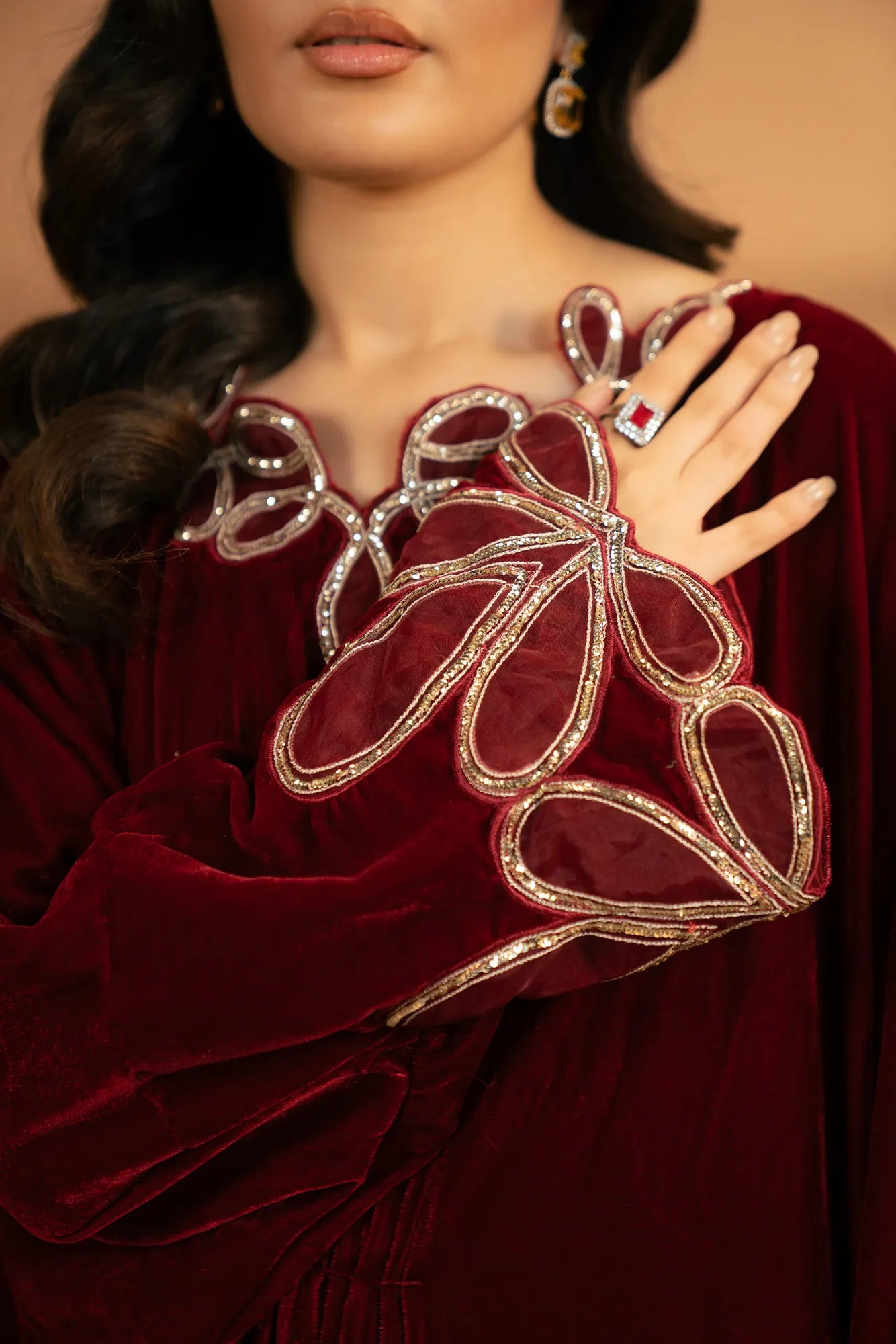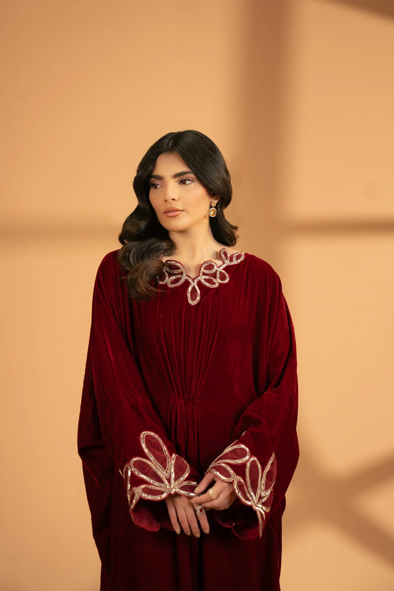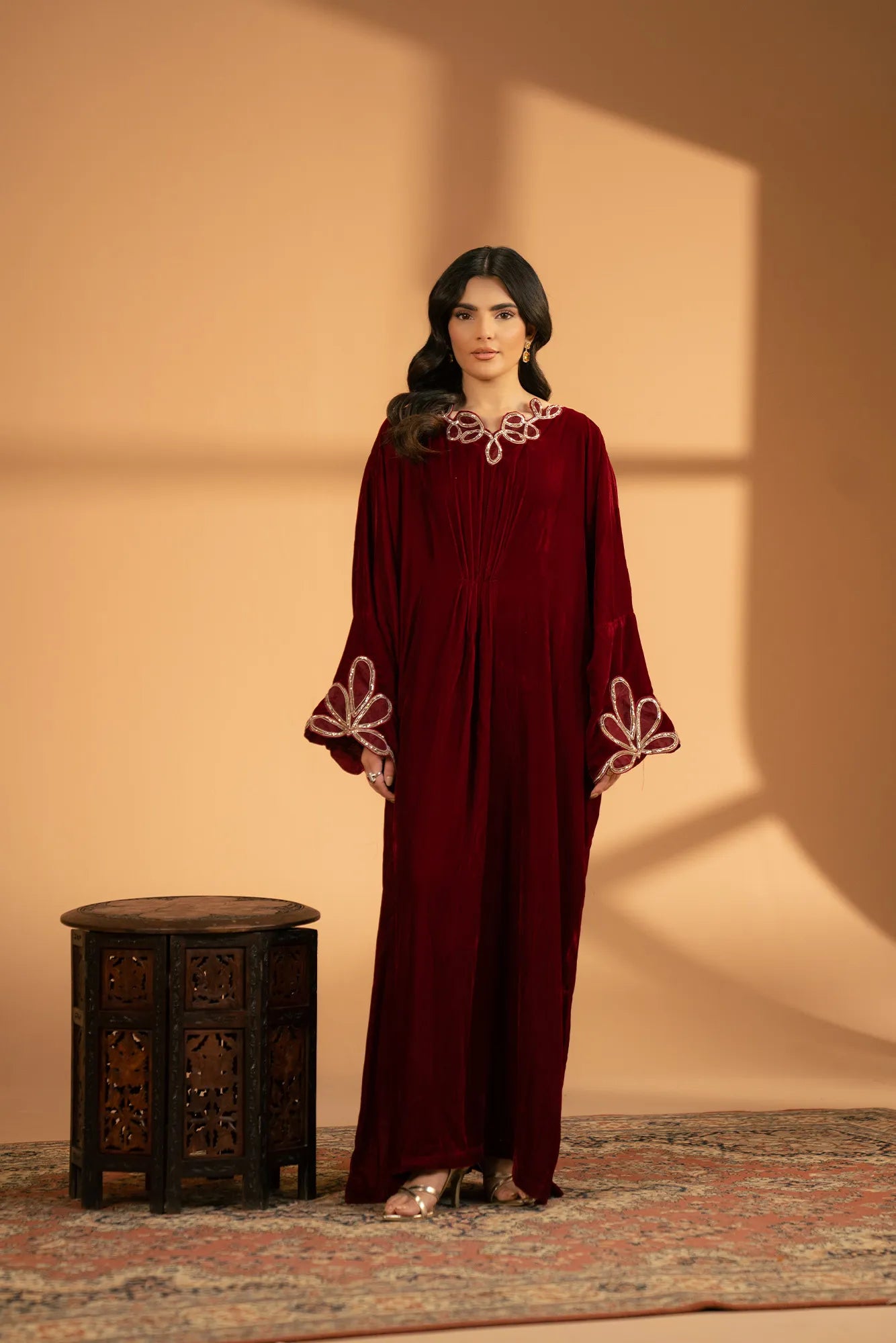 1 Piece Embroidered Raw Silk Kaftan Dress