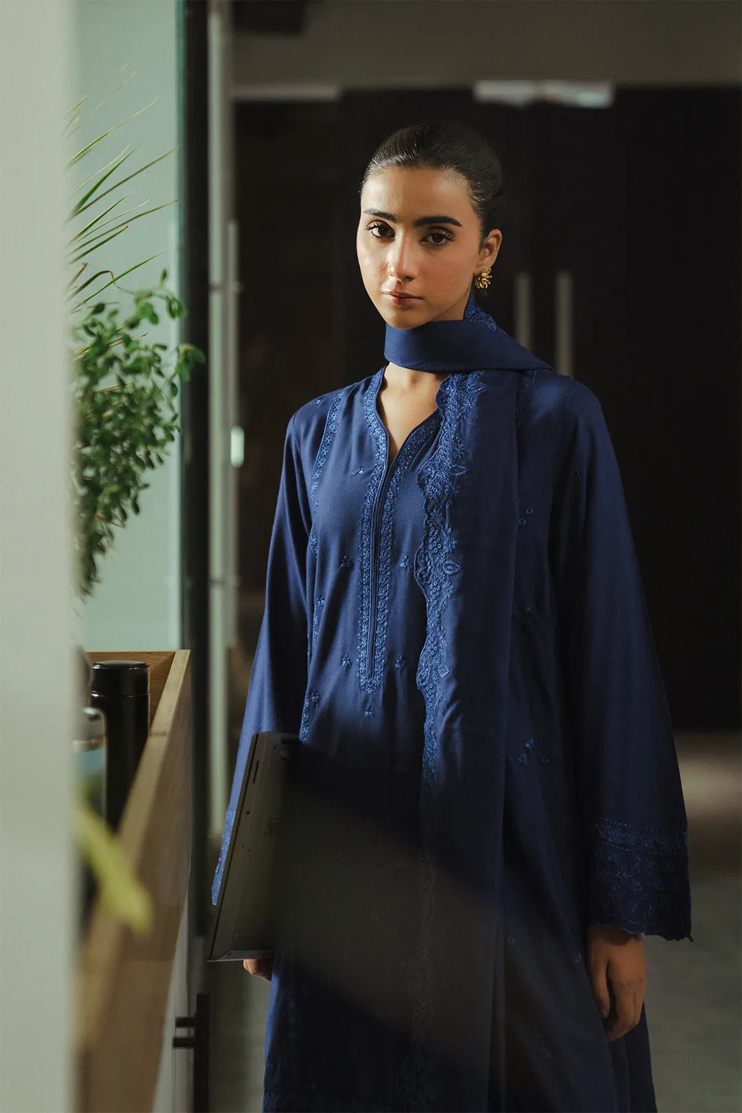 3 Piece Embroidered Linen Suit Unstitched Winter-24