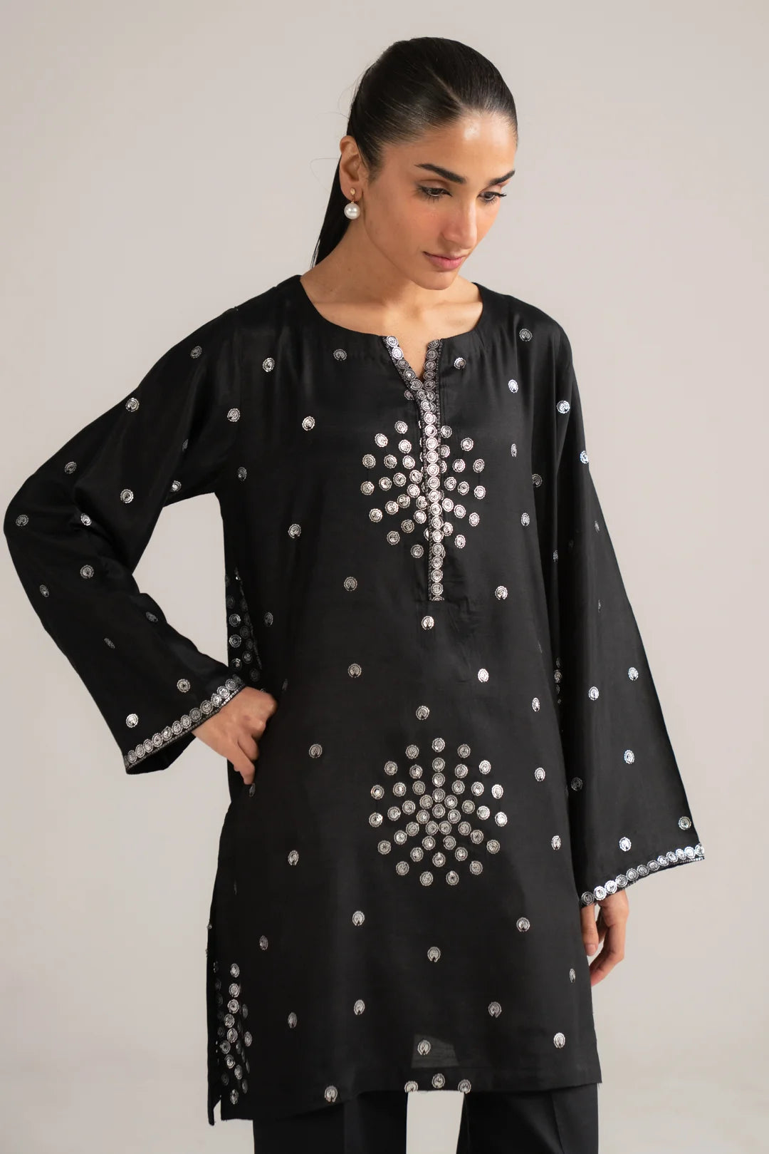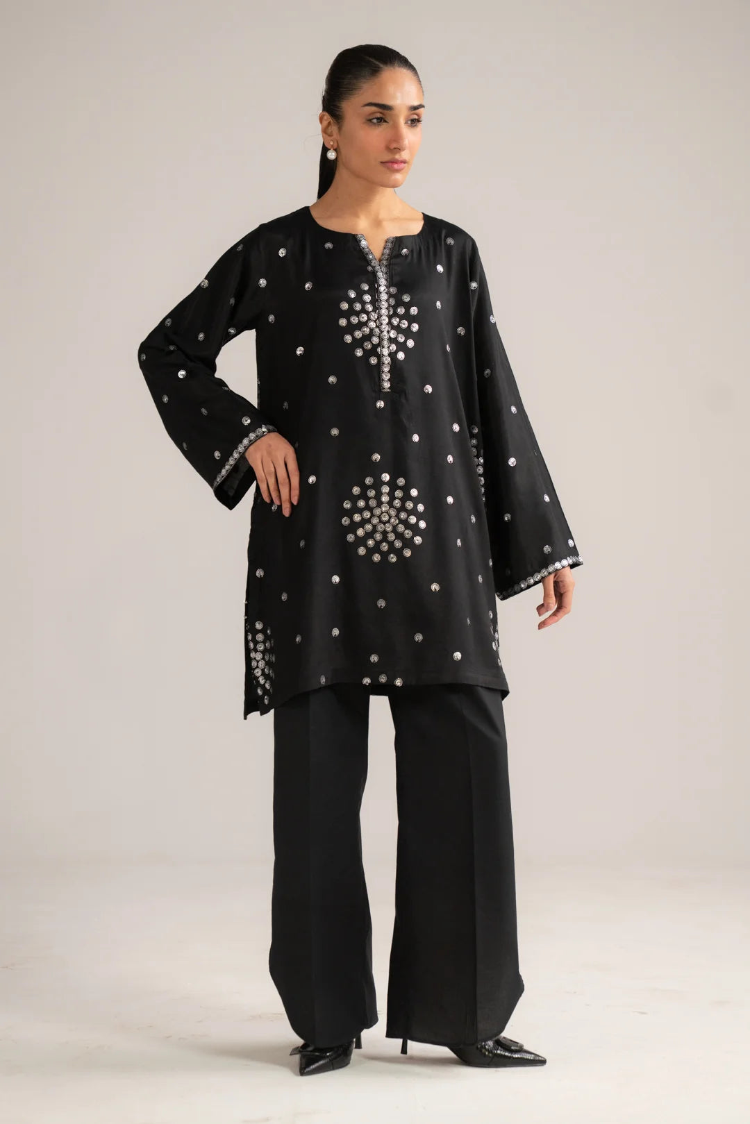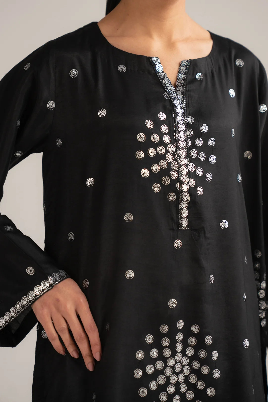 Black yarn dyed Embroidered Shawal