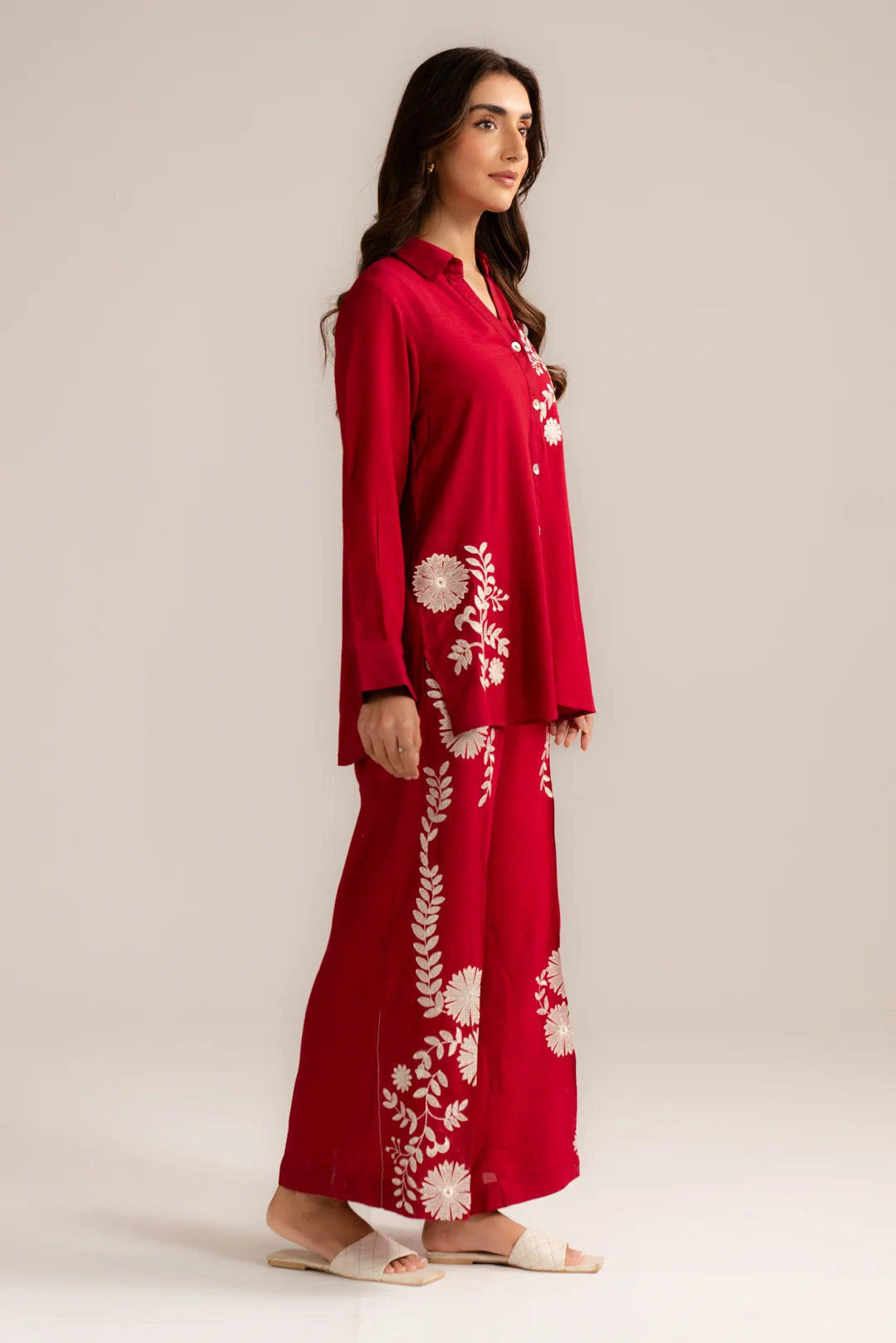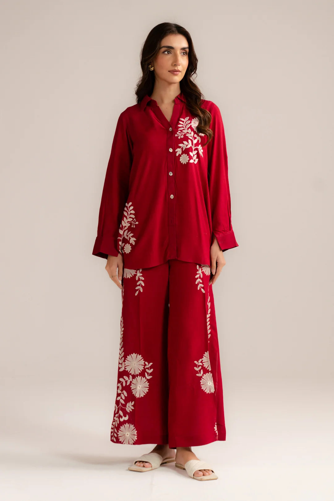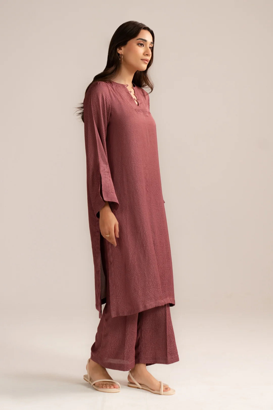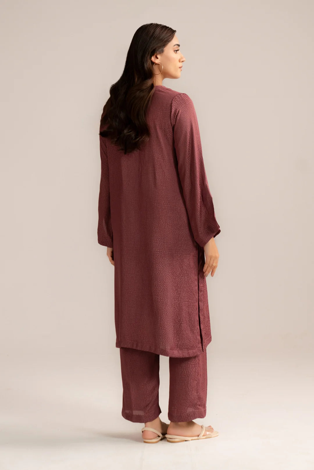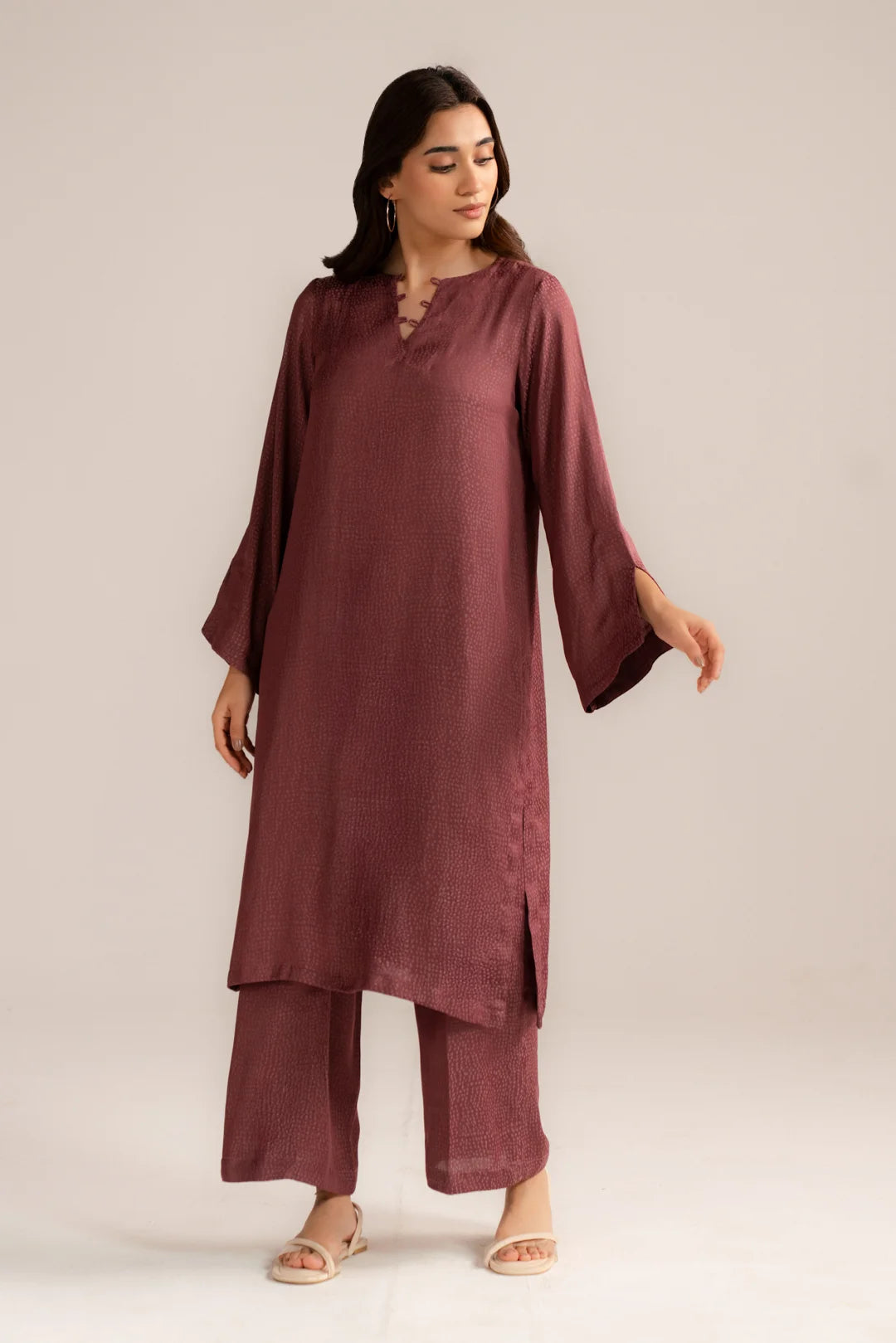 - Rust Co-Ord Set: A classy co-ord set with a subtle texture on rust fabric. Fabric: Viscose.