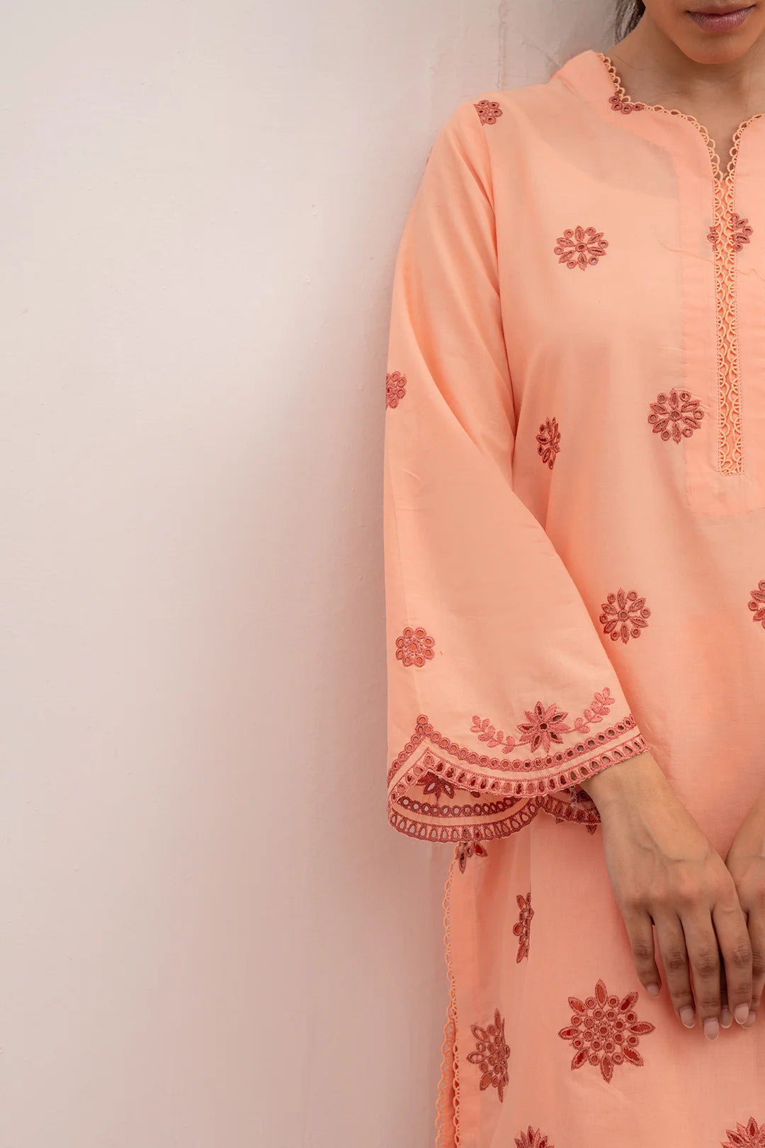 We recommend lawn, cambric, cotton, and chiffon for breathable comfort in the summer heat.