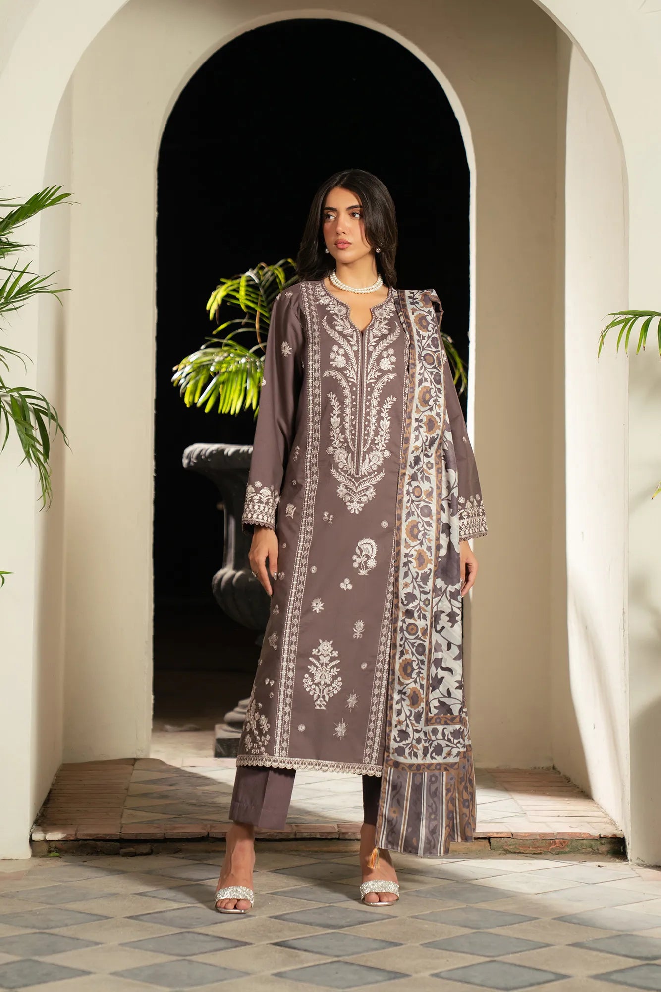 3 Piece Embroidered Lawn Suit - Elegant unstitched embroidered lawn suit with lawn dupatta, available online in Pakistan.