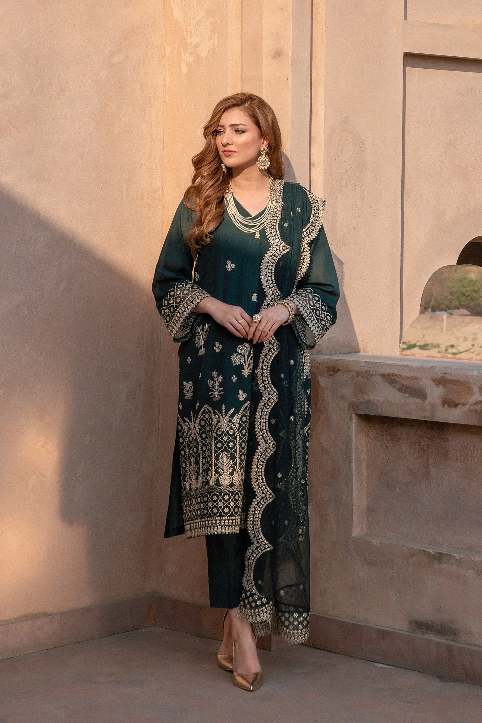 3 Piece Embroidered Viscose Suit Pret SS - 25