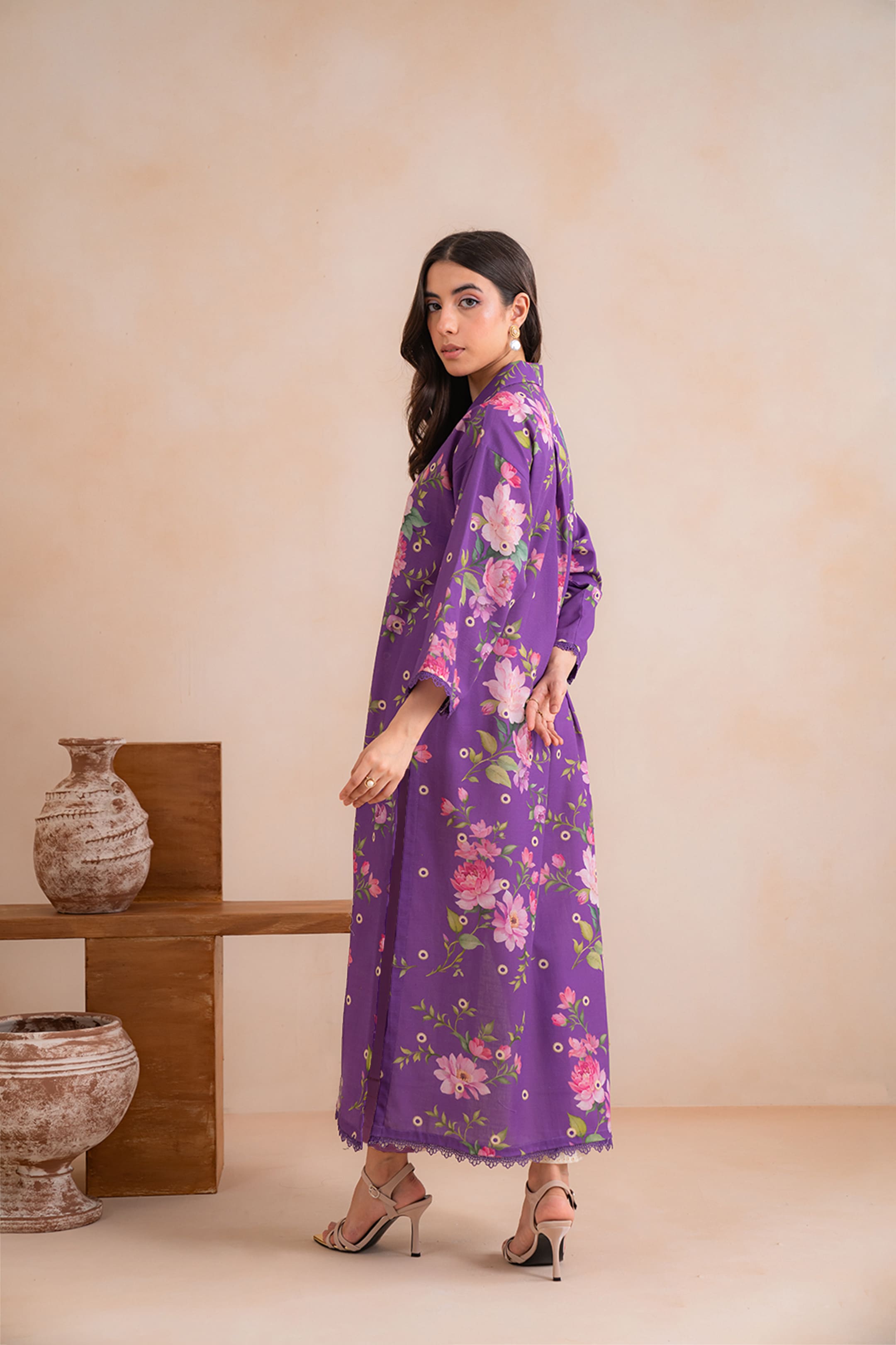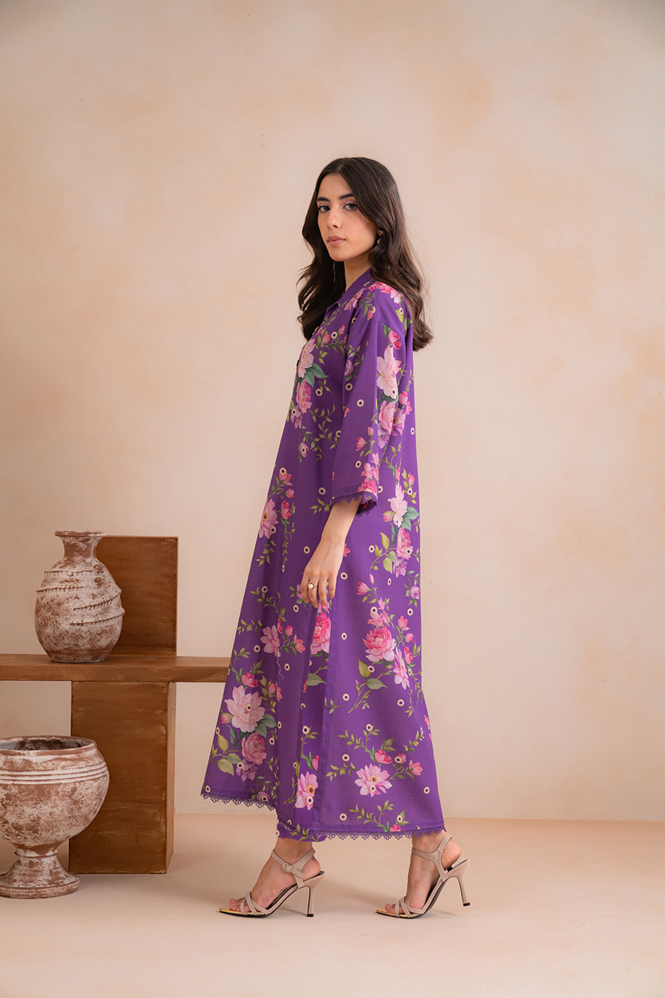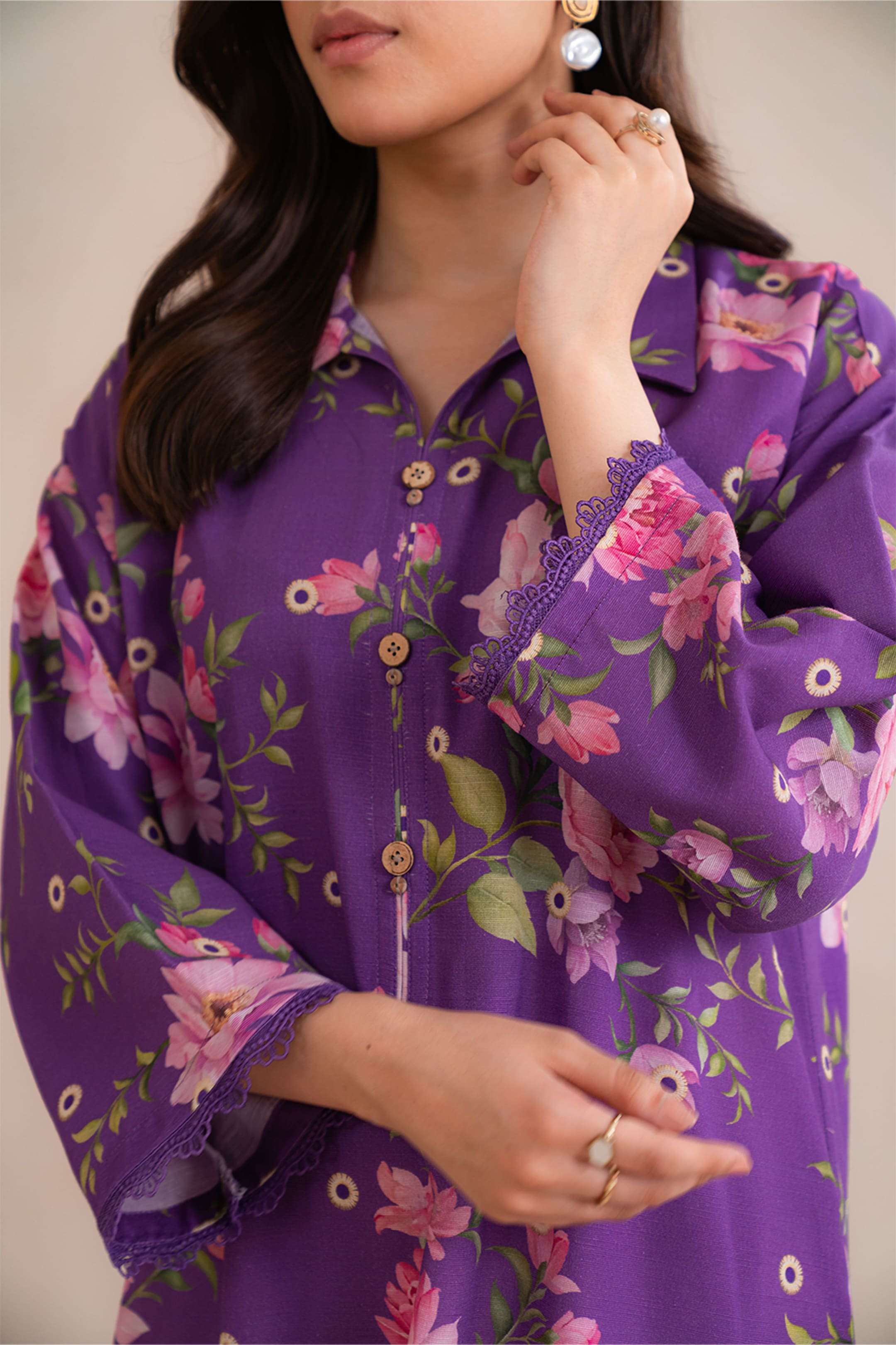 Elevate your style with this floral lavender bloom khaddar suit, with vibrant digital printed floral pattern. Perfect for casual wear.