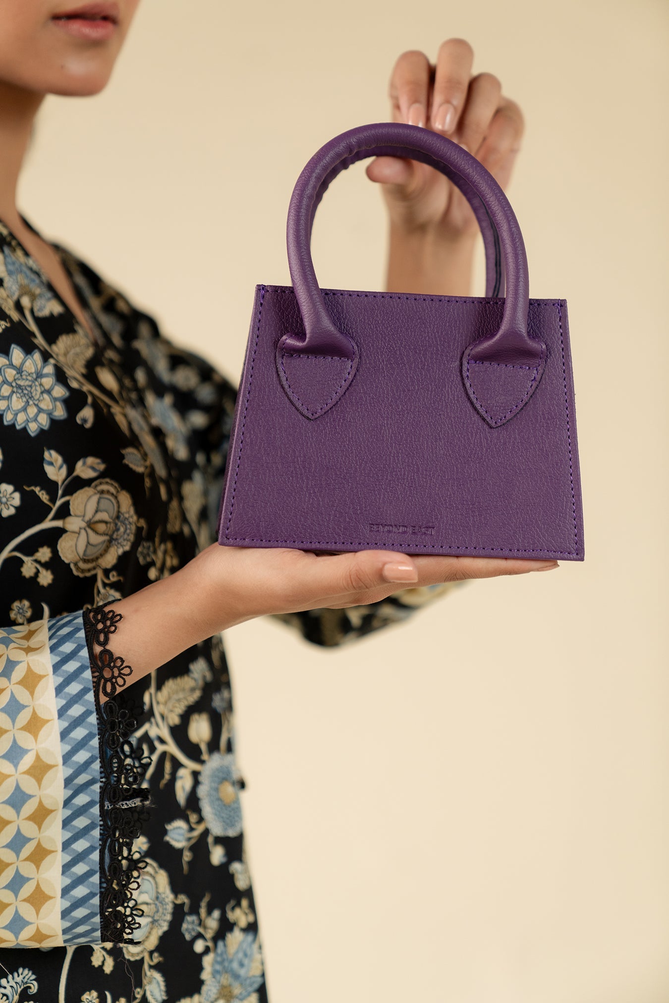 Small in size, big on style! This chic mini handbag in a bold purple hue is perfect for making a statement. Crafted from premium textured faux leather with sturdy top handles, it's designed for elegance and charm. Ideal for carrying your essentials with a touch of sophistication.