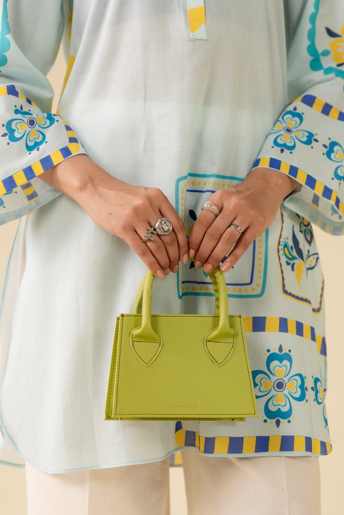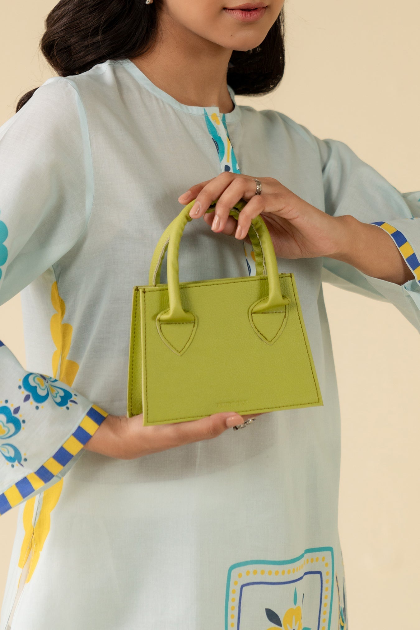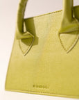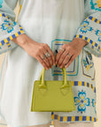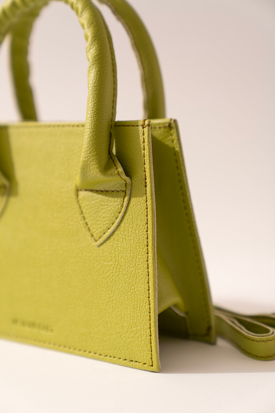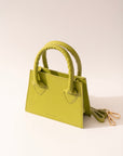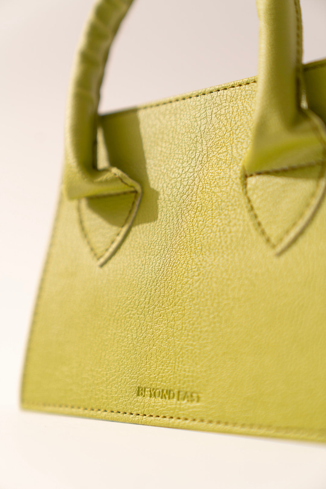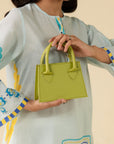 Add a fresh twist to your look with this stylish lime-green mini handbag. Made from premium faux leather, it features structured top handles, fine stitching, and a compact design perfect for carrying your essentials in style. A bold yet elegant statement piece for any occasion!