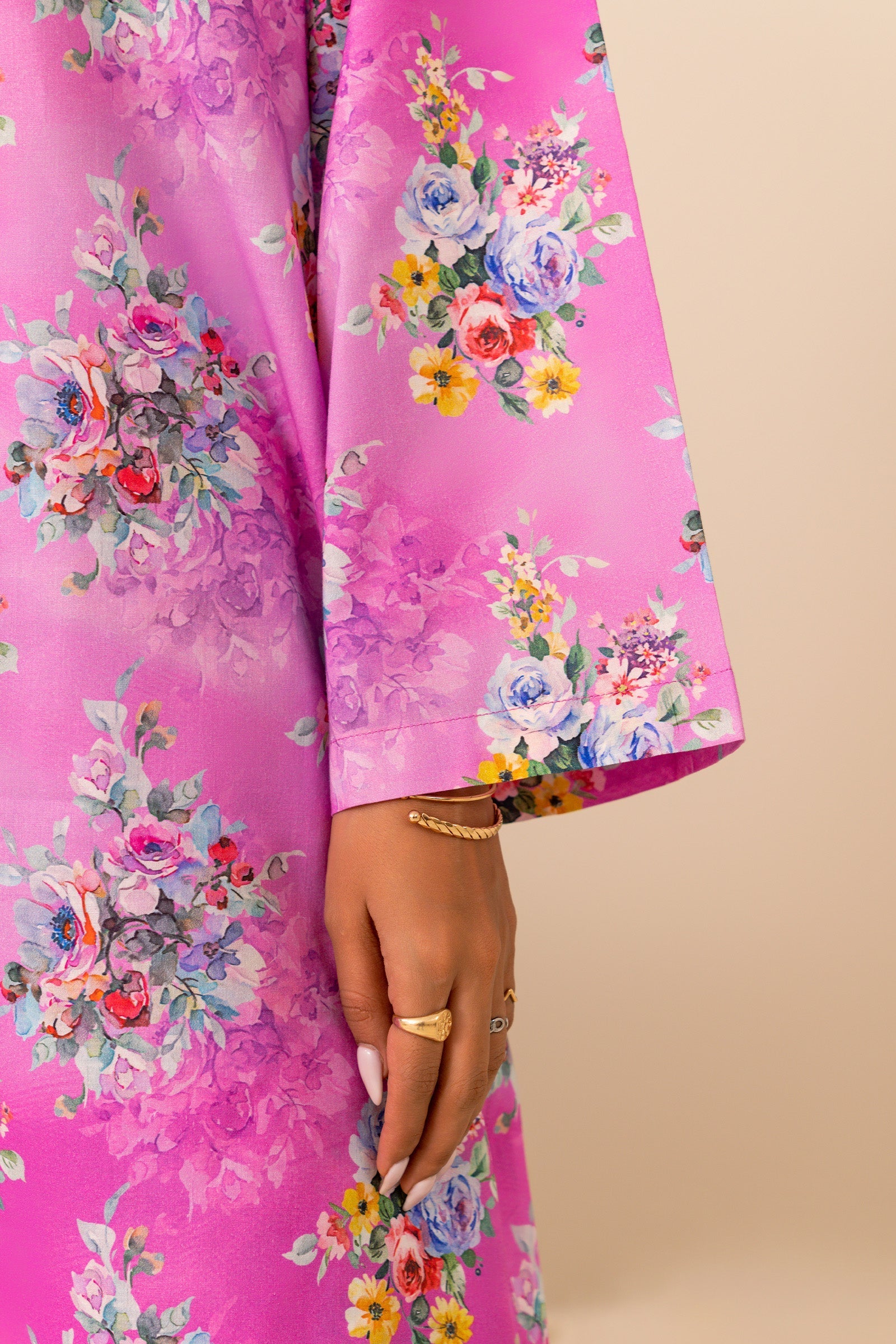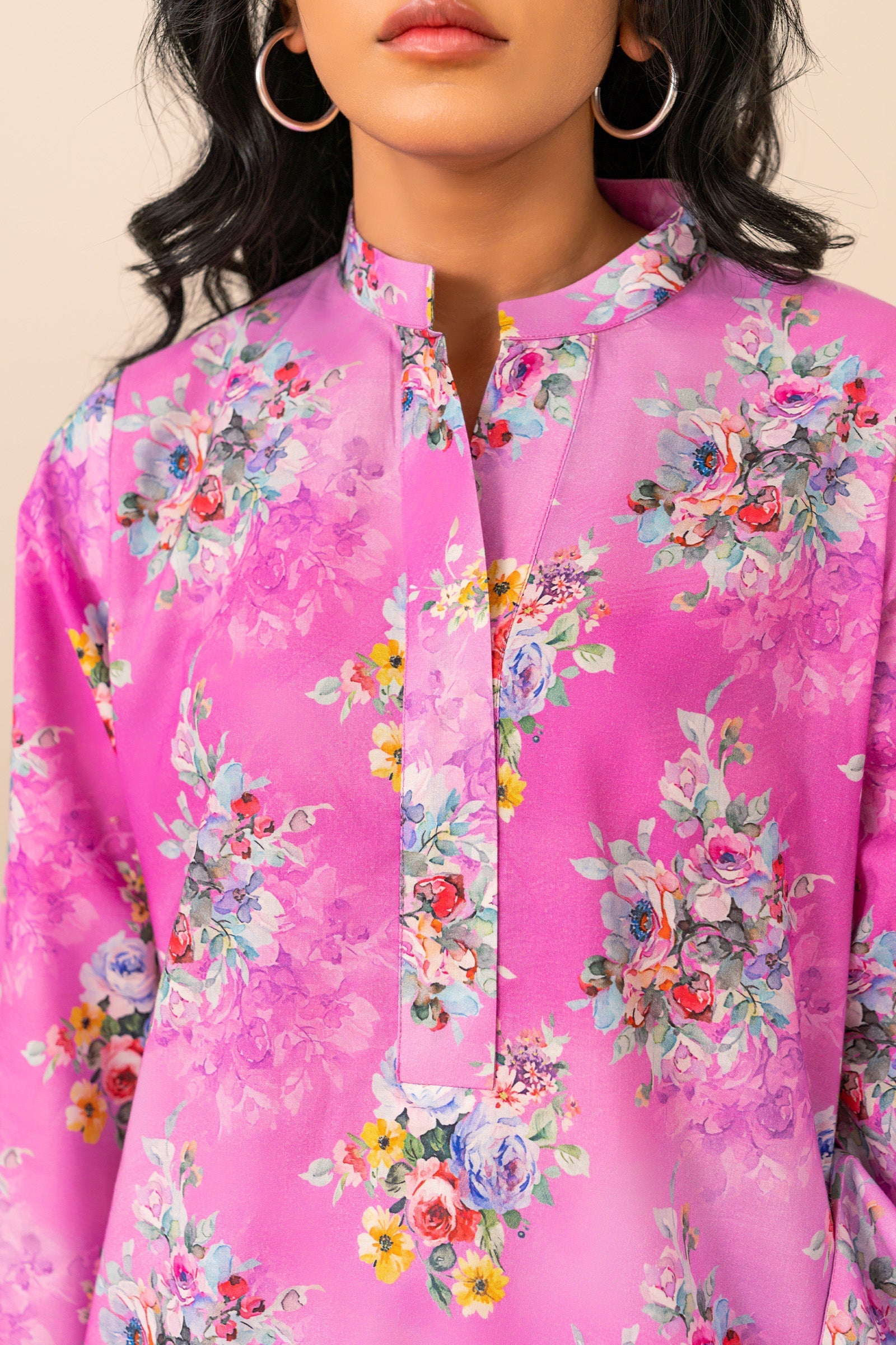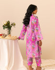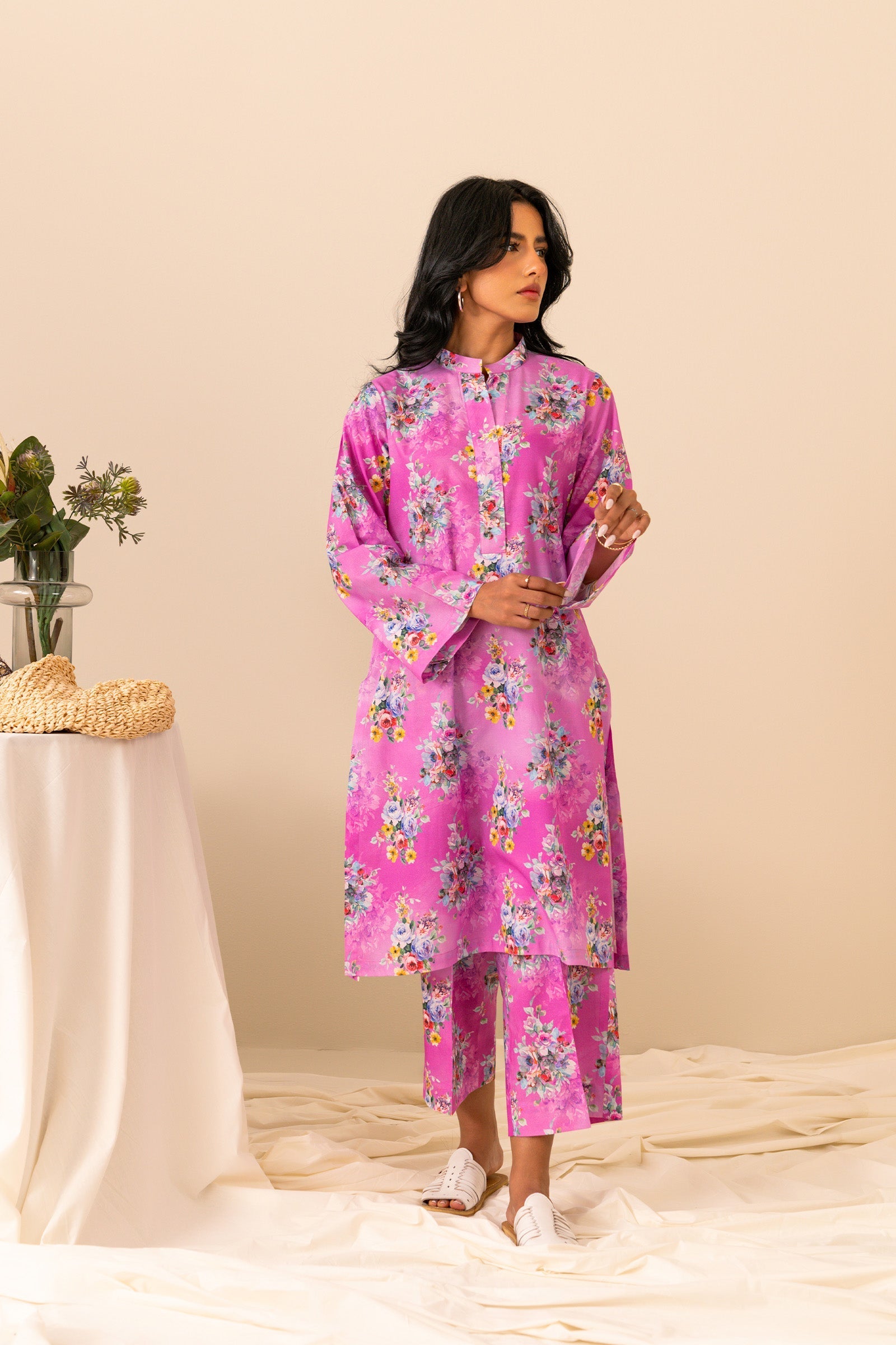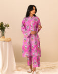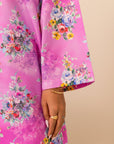 This Barbie pink suit is crafted from cambric fabric features a striking black and white floral pattern on the shirt. Accompanied by matching straight trousers, this playfully chic ensemble will brighten up your look on any summer occasion.