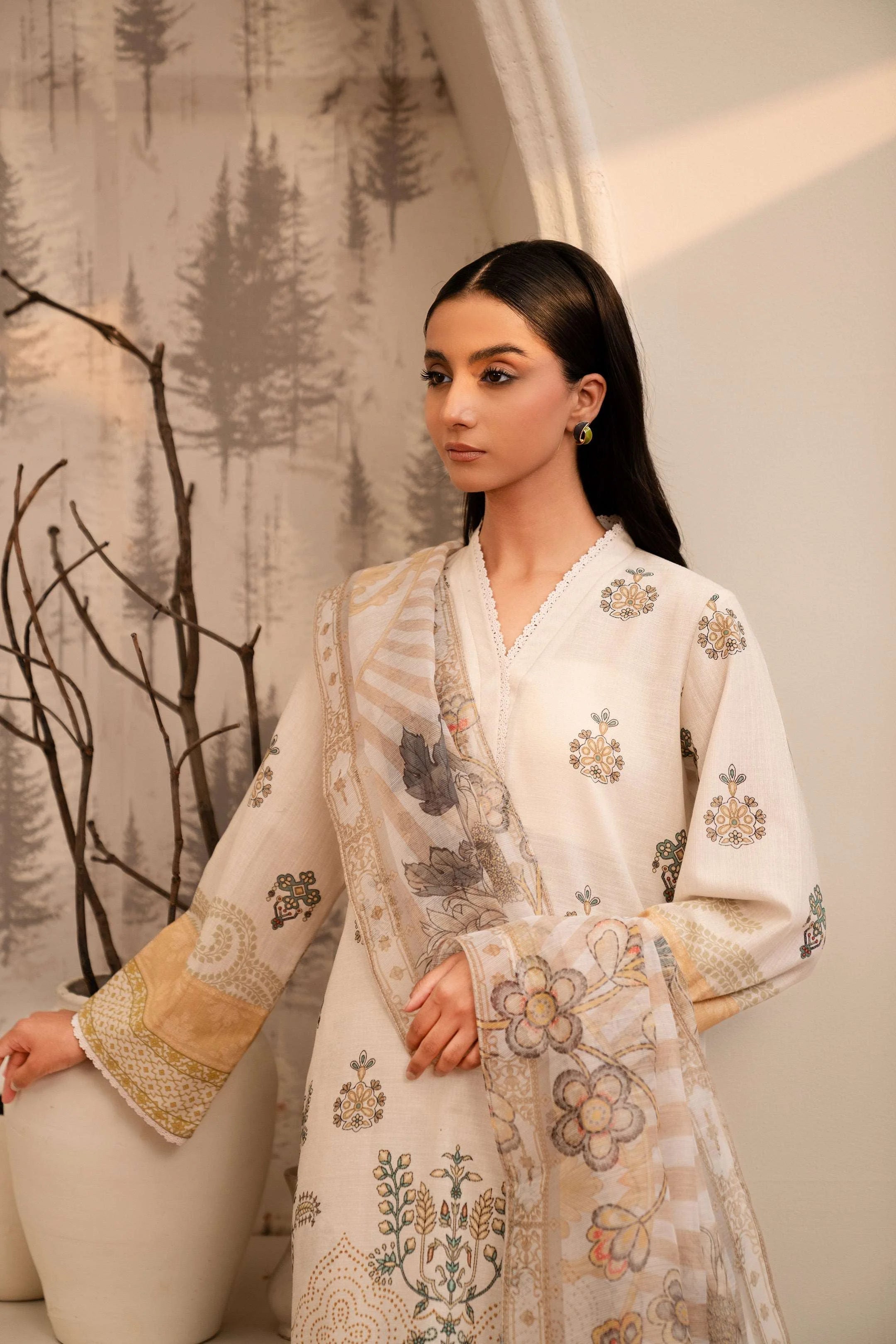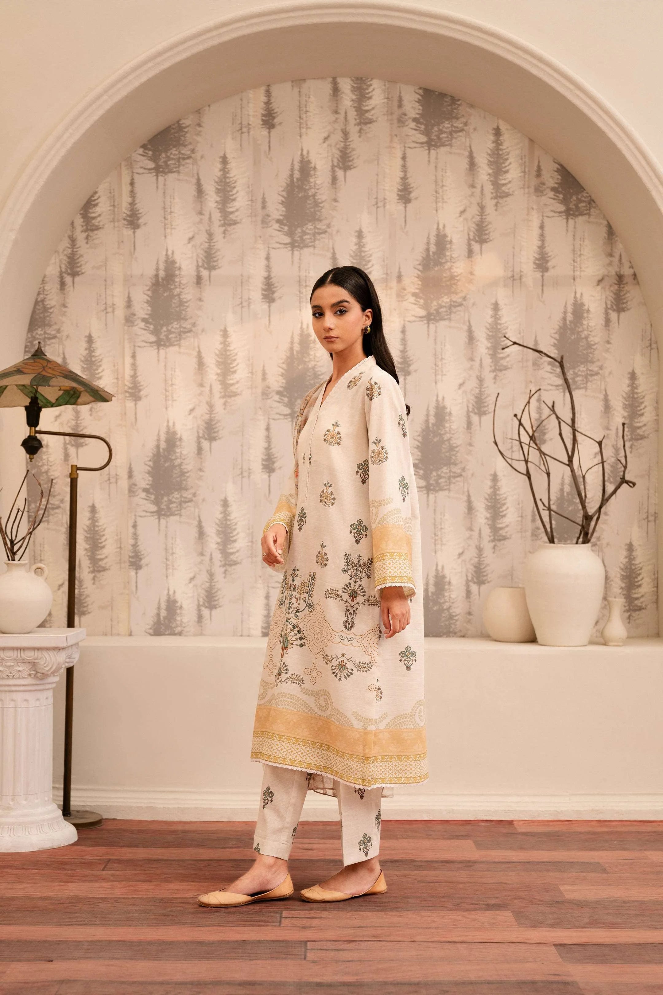 Revamp your look with this vibrant khaddar suit pair with printed trousers , perfect for any occasion.