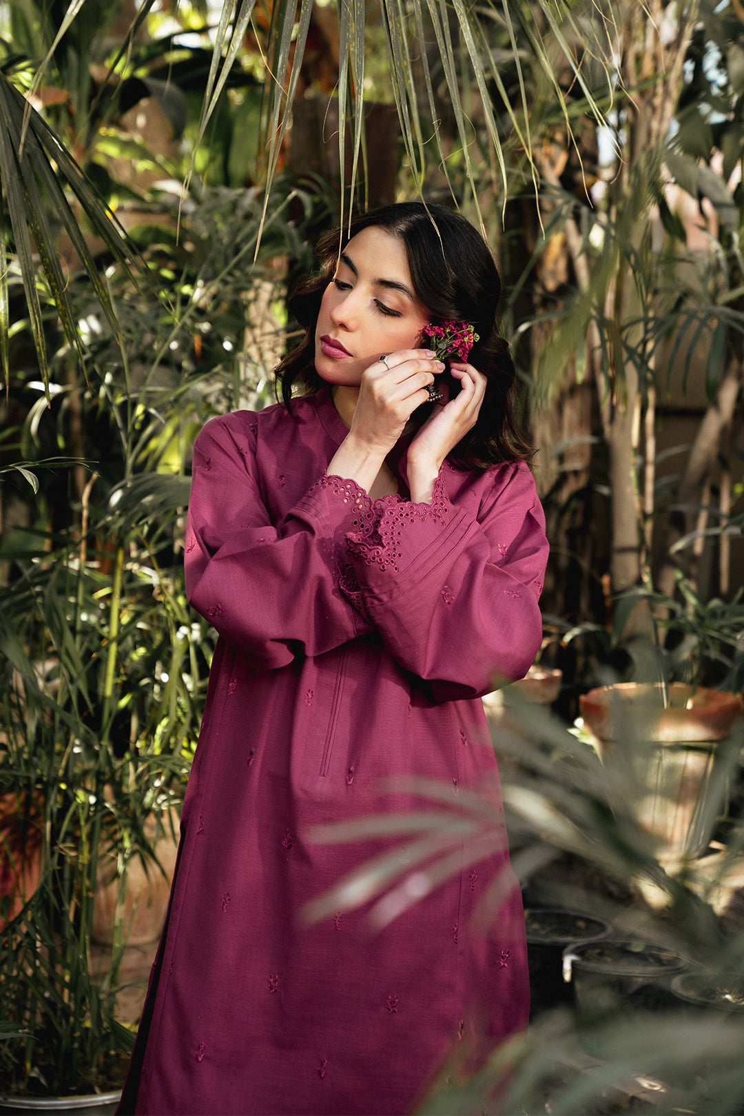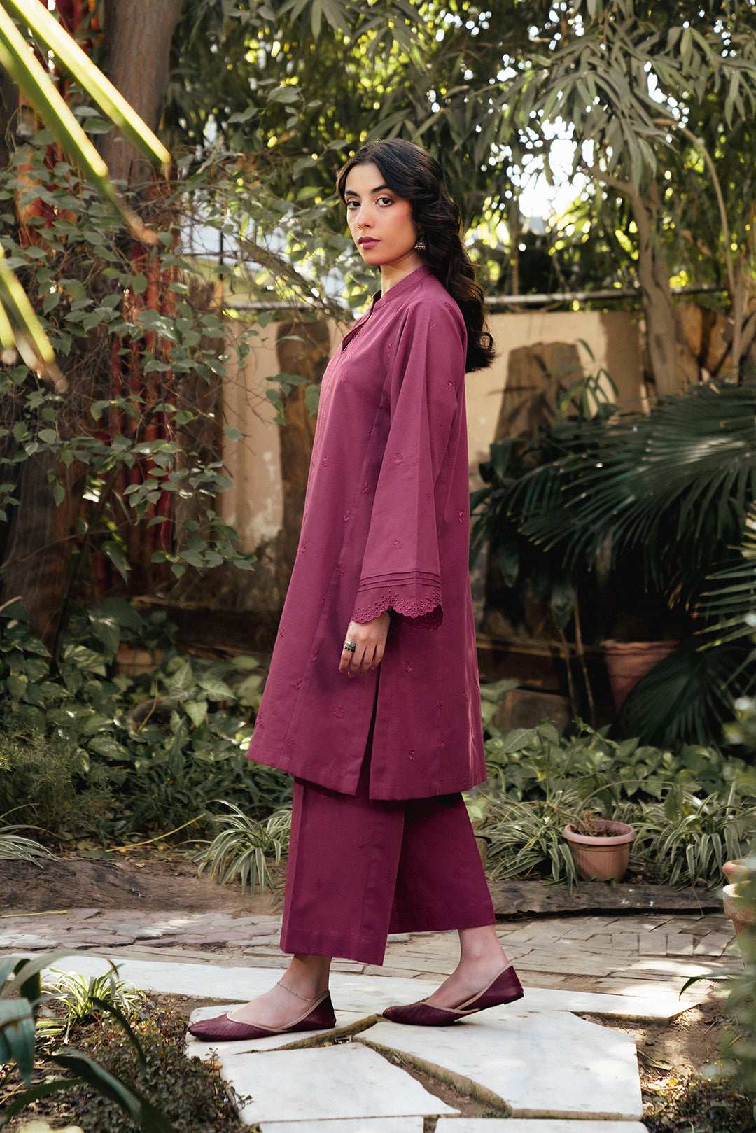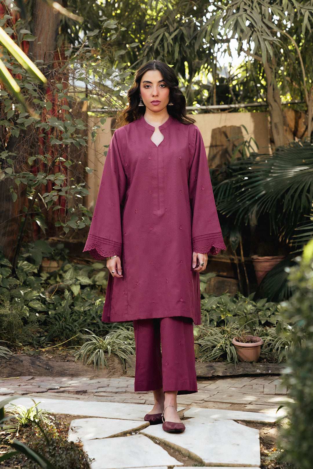 Muted pink khaddar 2-piece with minimal embroidery. A perfect blend of elegance and comfort for casual wear.