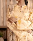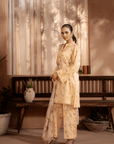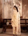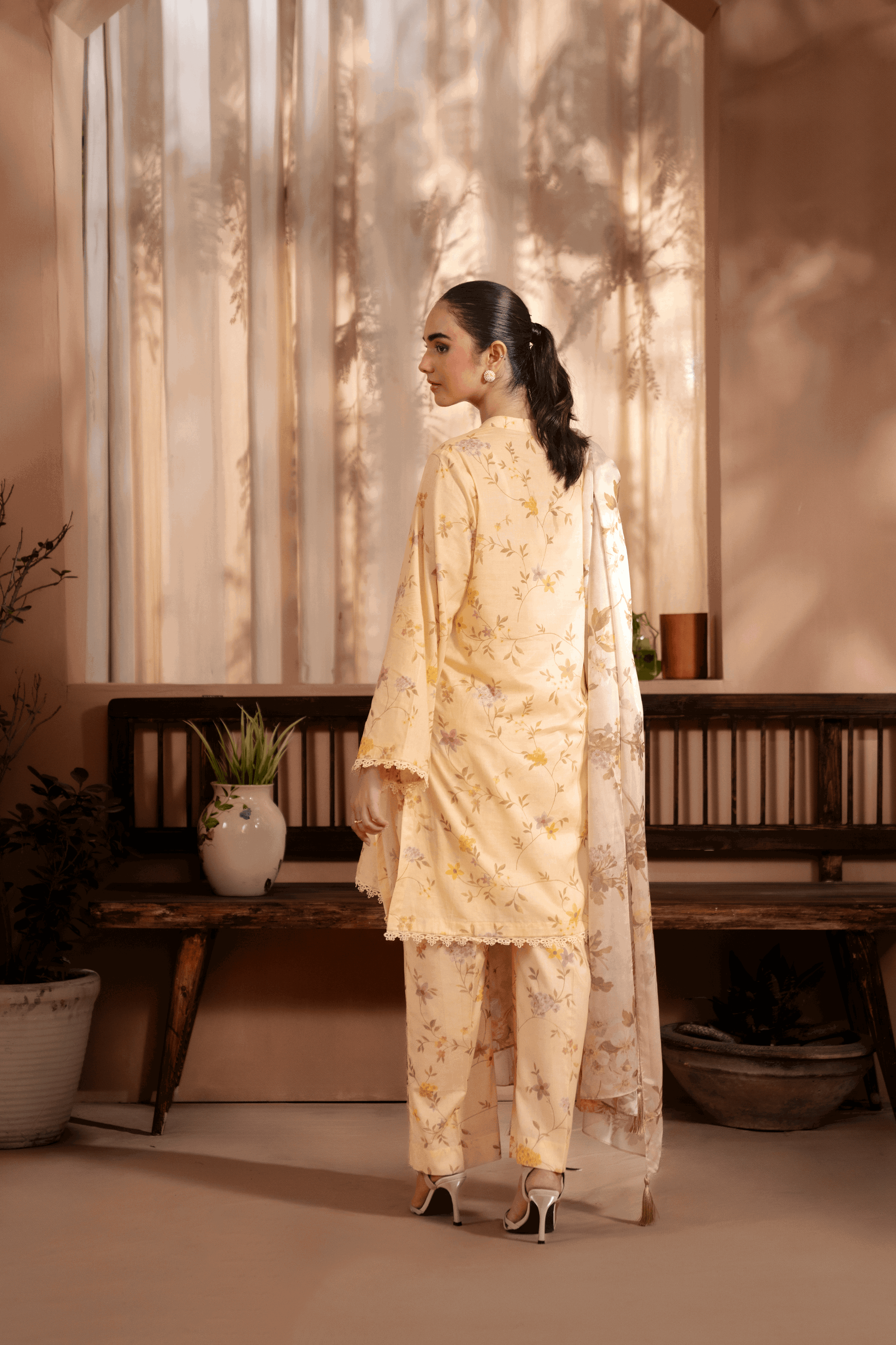 Sleek and modern, the botanical printed suit with silk dupatta adds a touch of luxury to the fit.