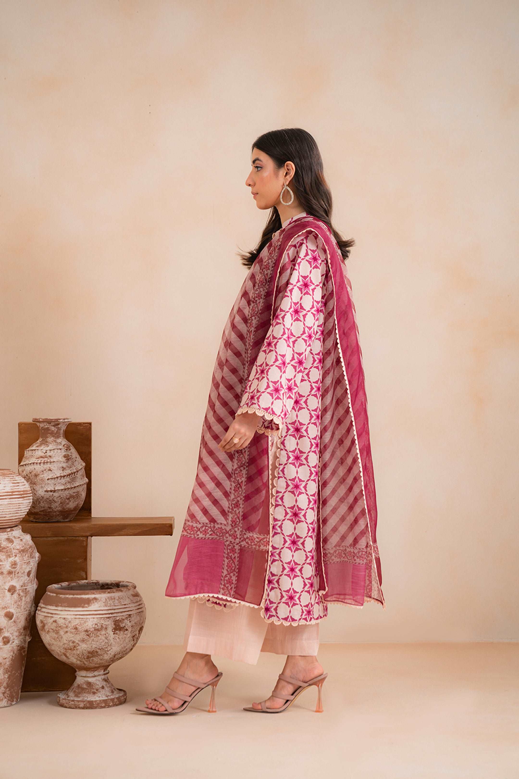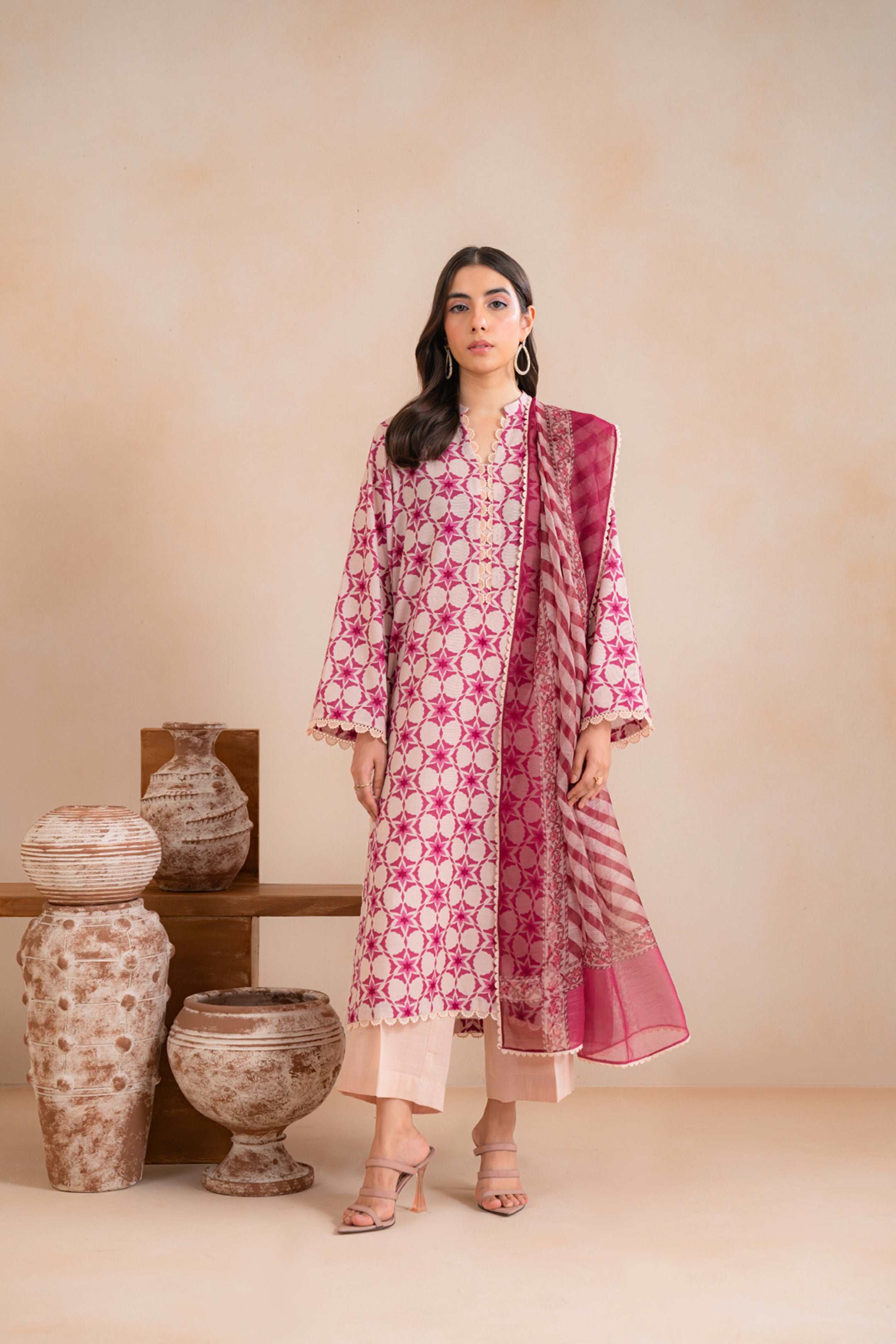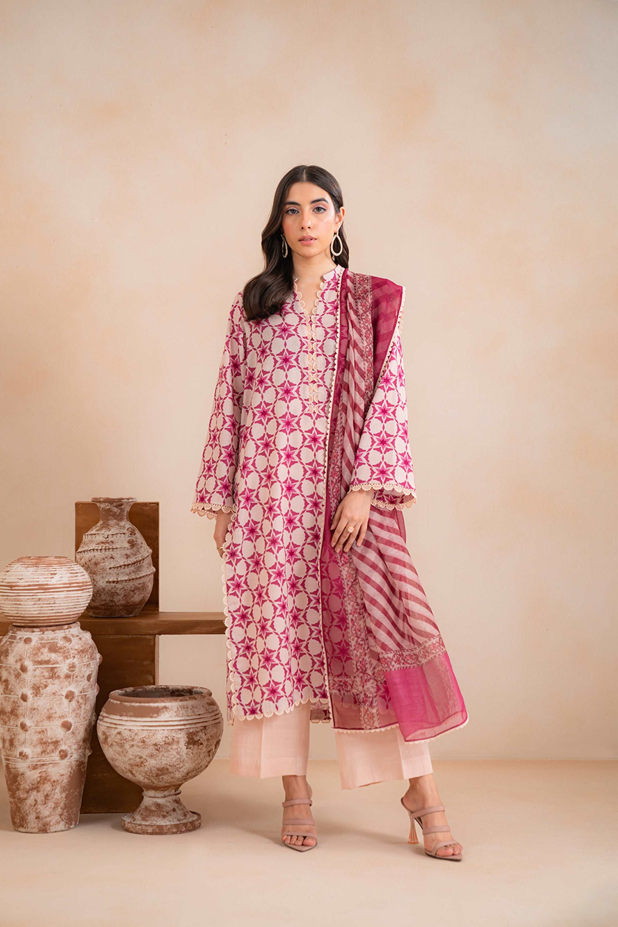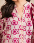 Be fashion-forward with this soft pink 2-poece unstitched suit, merging bold prints and versatile styling for any ocassion