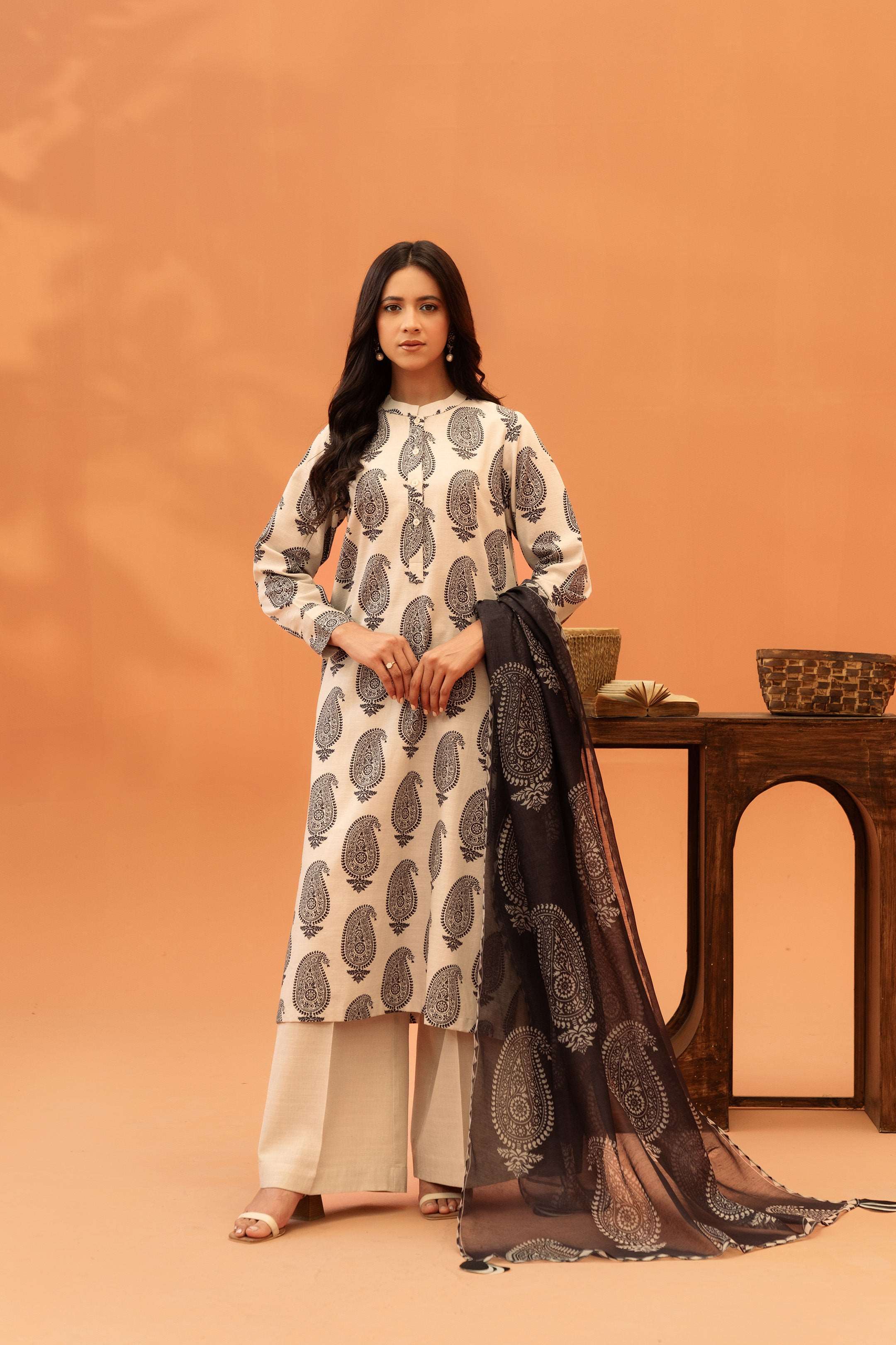 Graceful black Monark dupatta adorned with intricate paisley motifs, perfect for an elegant and timeless look.