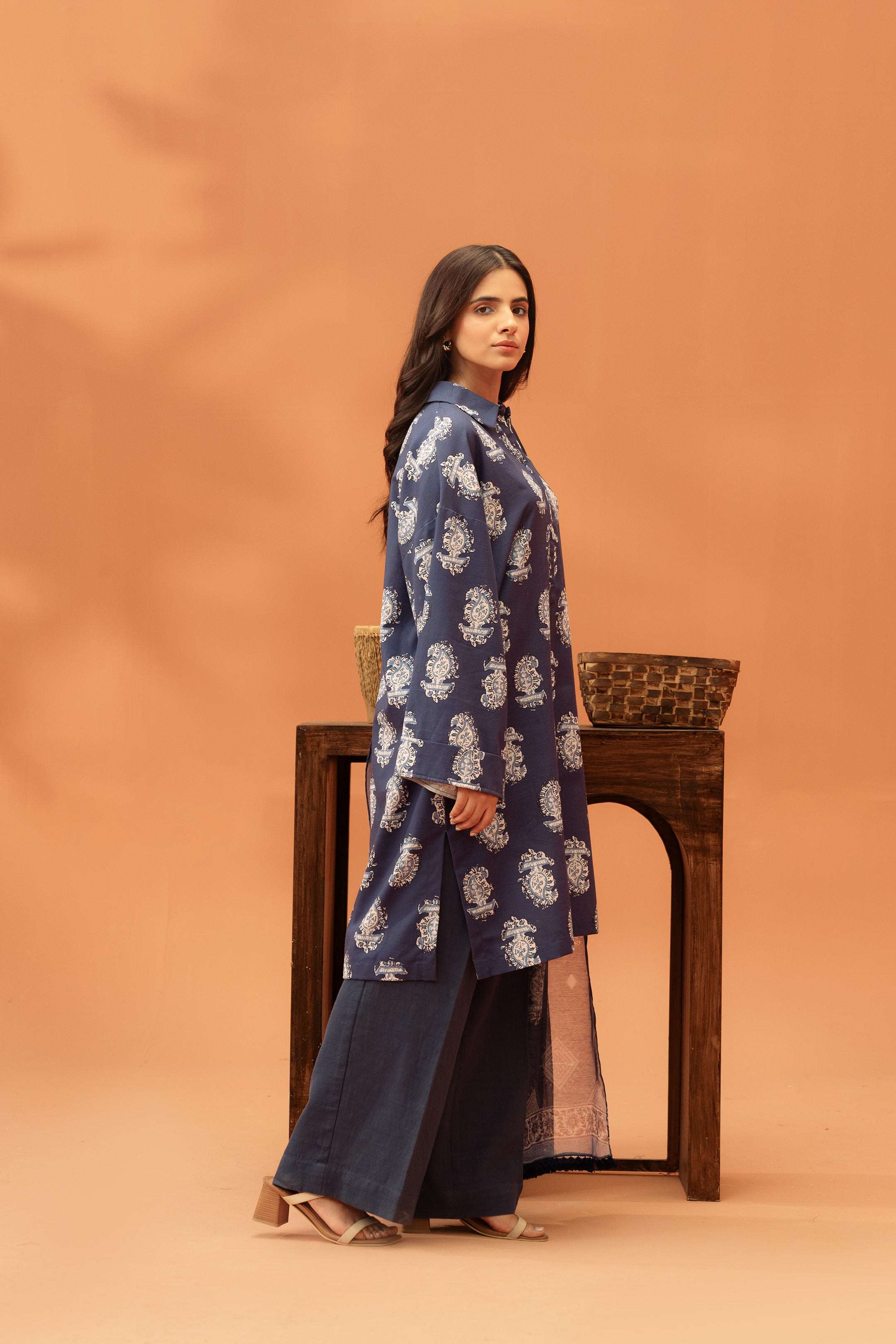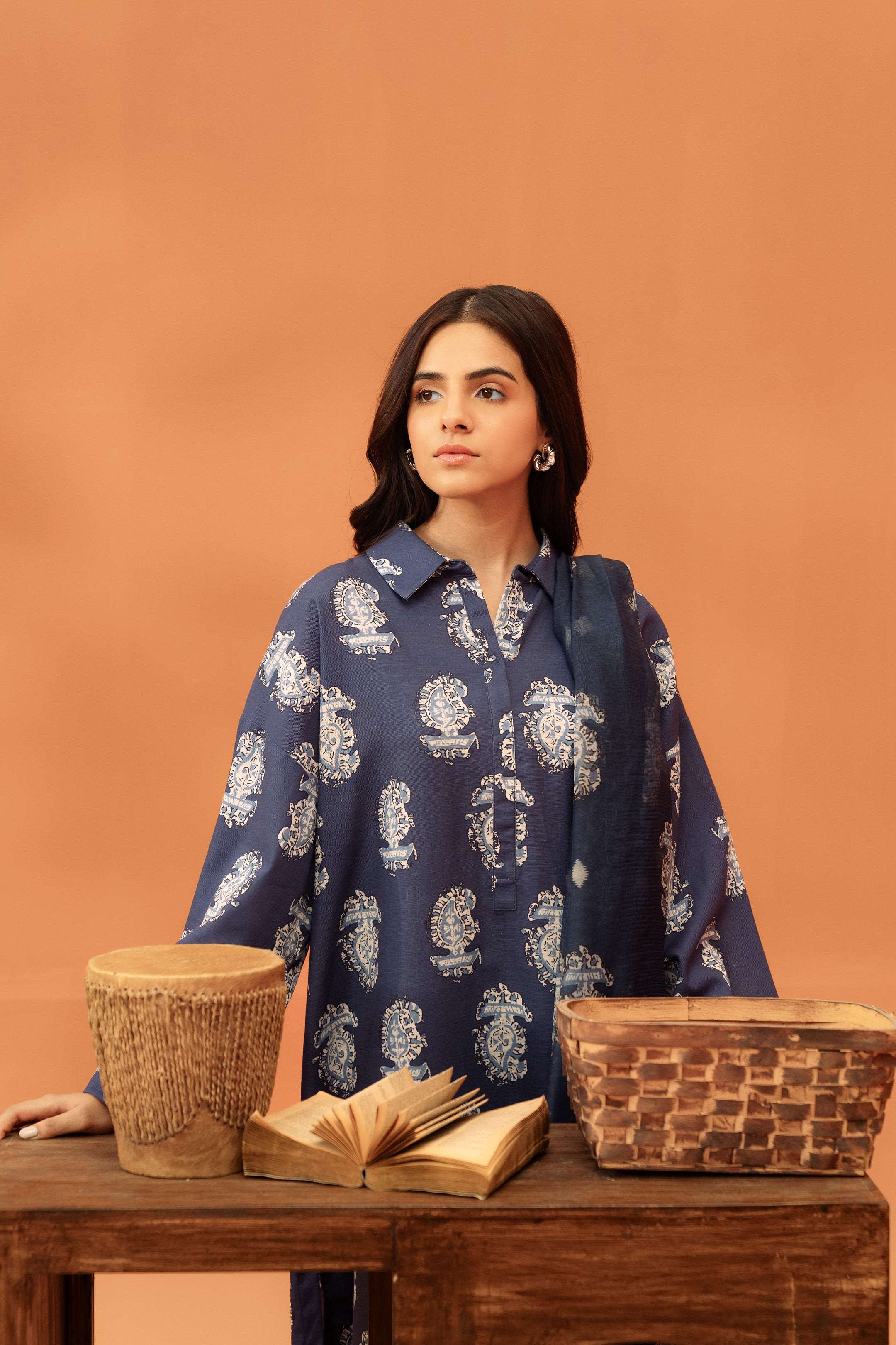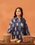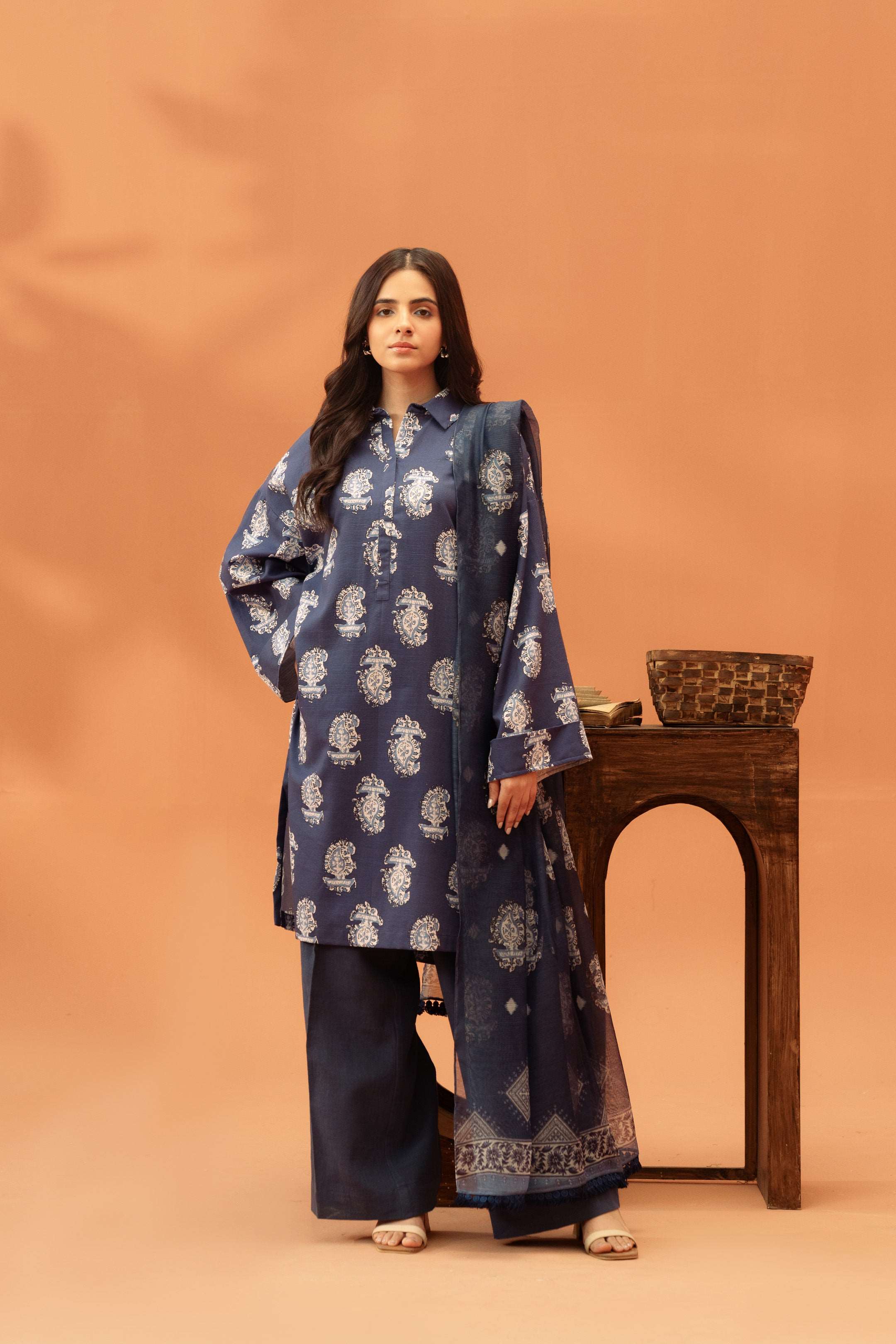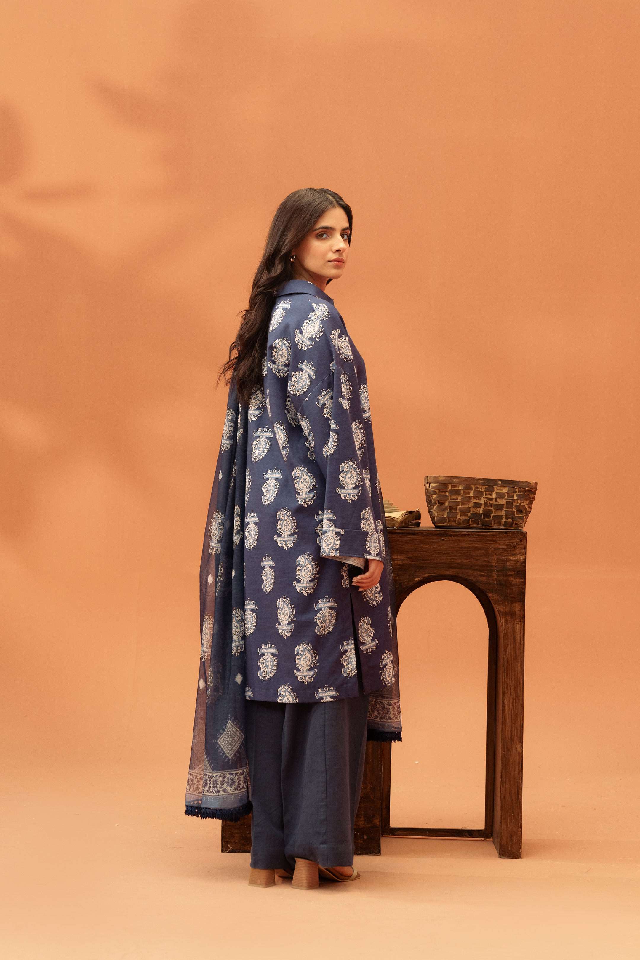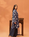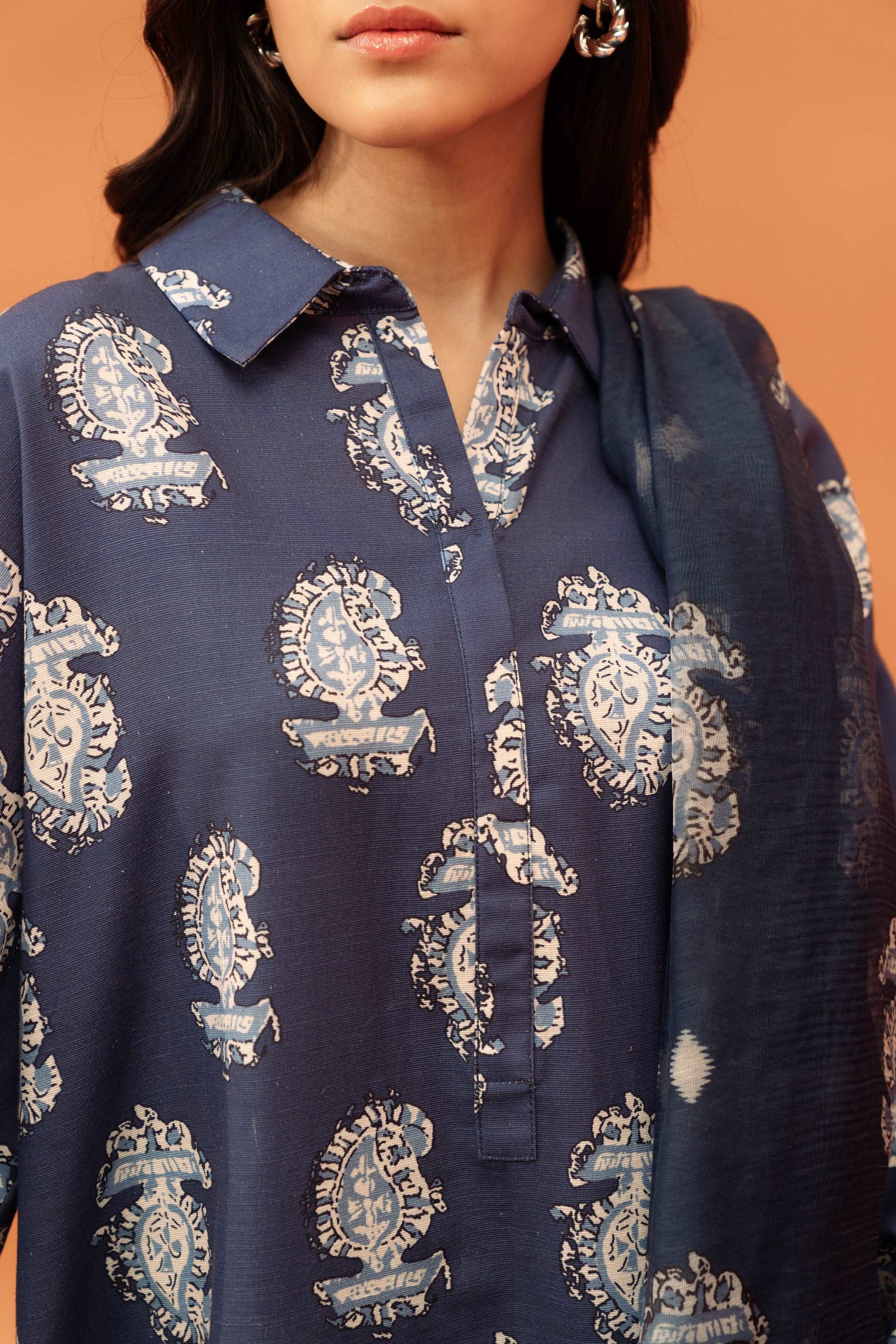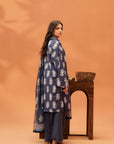 Elegant navy blue Monark dupatta featuring intricate traditional patterns, adding a refined touch to any outfit.