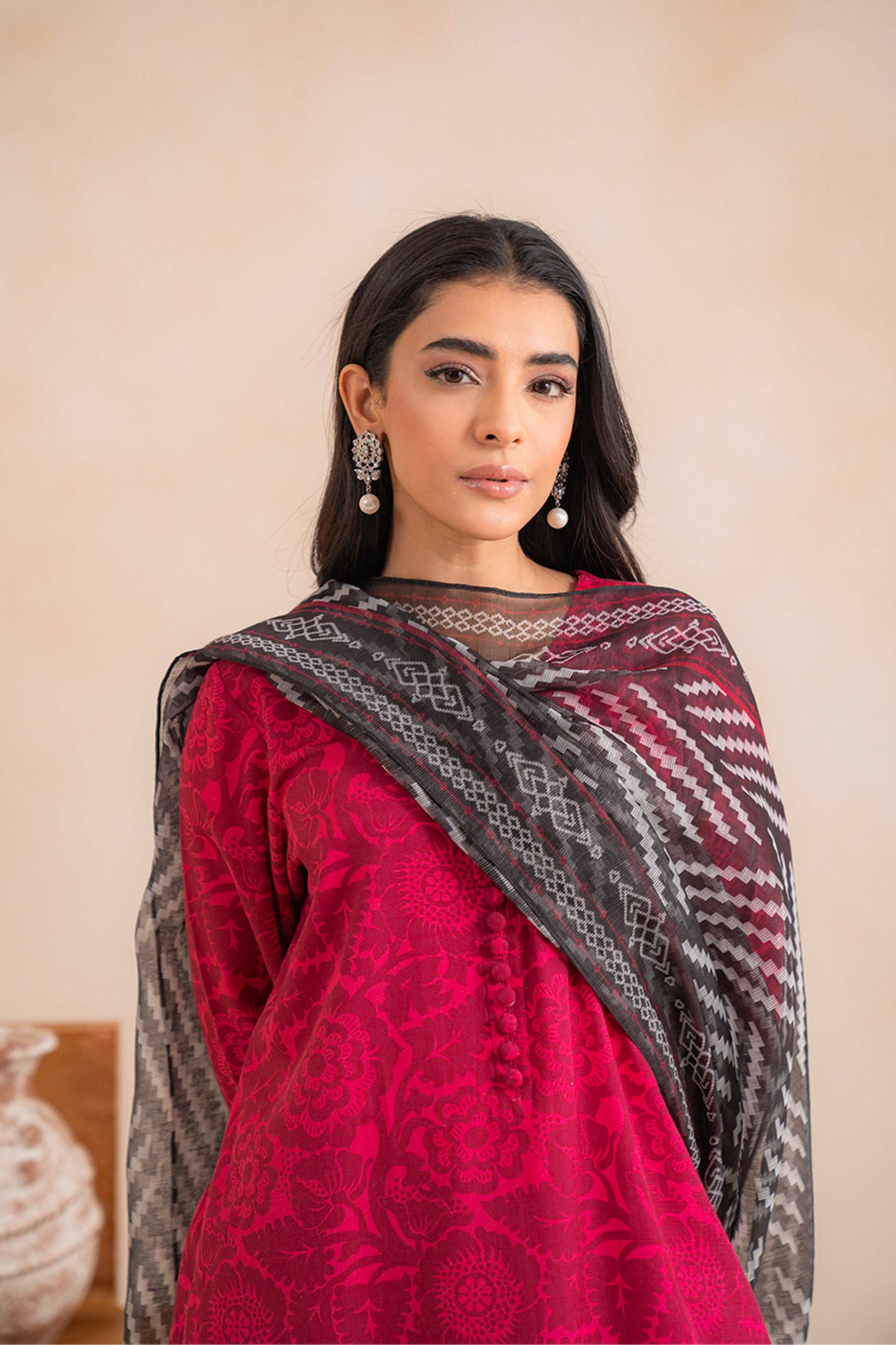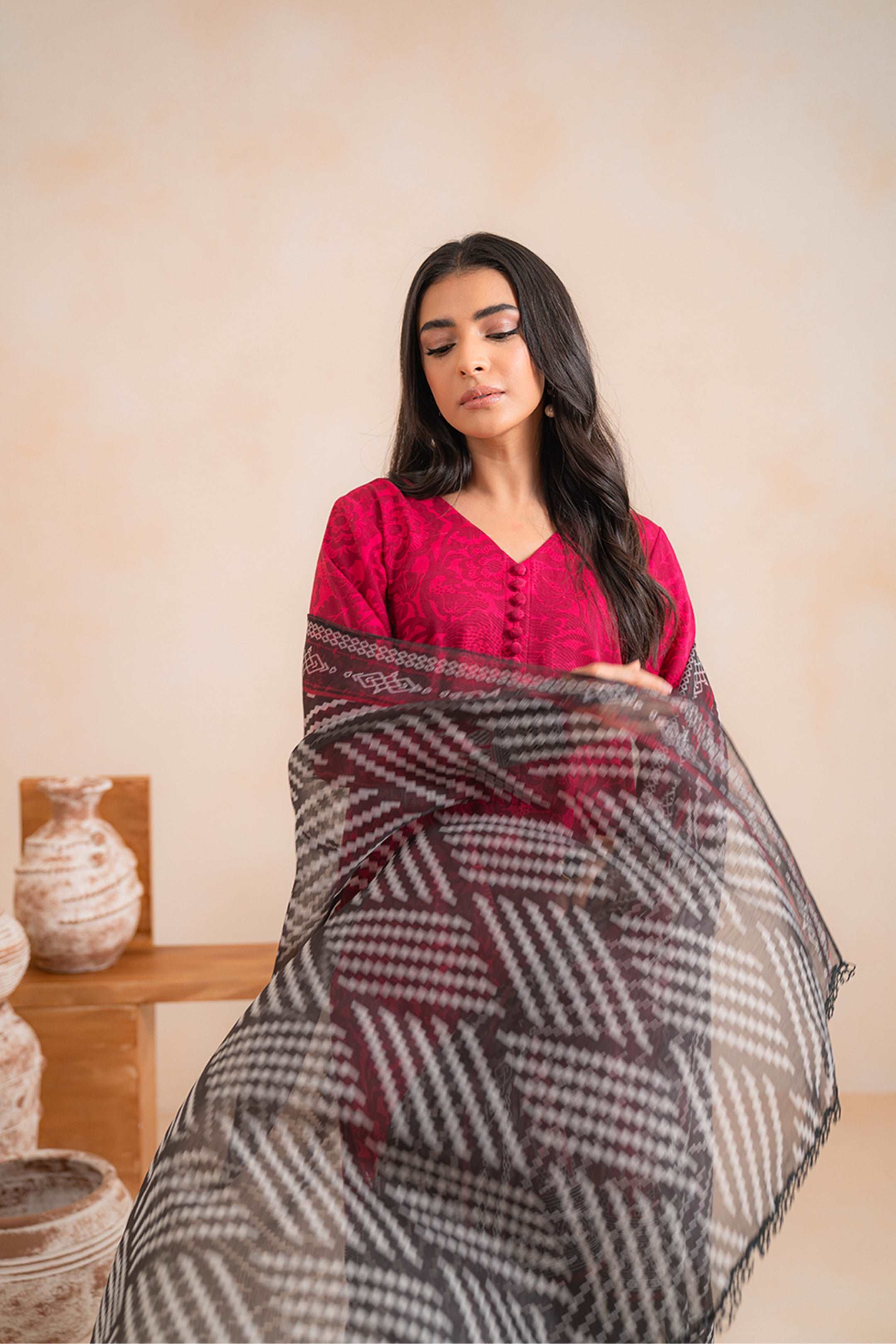 A sophisticated black and white monark dupatta featuring a modern geometric pattern, adding a bold yet elegant touch to the ensemble.